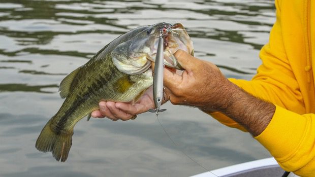 “Loosen the screws securing the props on your topwater plug just enough to allow the cup-washers to move freely without compromising strength,” said the Bassmaster Elite Series pro from Gainesville, Fla. “If the cup-washer is stuck to the clear coat on the lure body, pop it free. Loose hardware will create a very desirable chattering sound when the blades are turning.”