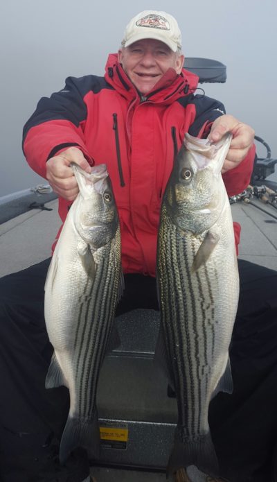 Picture: Captain Dale with 2 large stripers caught last week while fishing with a friend at Smith Mtn. Lake