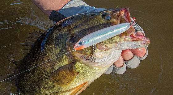 Although the Skitter V was introduced last summer in a new line-up of coastal Rapala baits, bass anglers were quick to adopt it for freshwater fishing. “It’s the right size and has right hook distribution,” Schultz says. “This is a really well-thought-out bait.” It’s versatile too. “You can push water with it aggressively,” he says, “or you can let it glide and be more of a stealthy, subtle approach.”