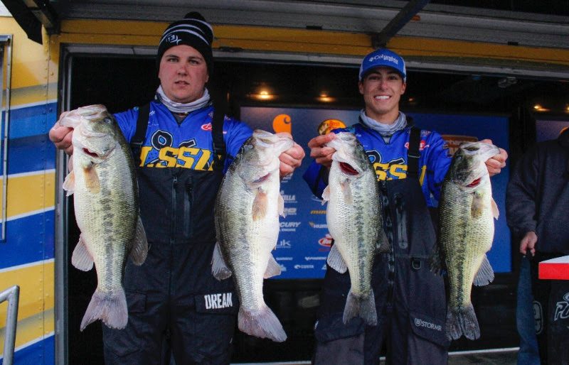 Wednesday’s leaders Jacob Louis and JT Russell of McKendree University fell to third place, but are within striking distance going into the final frame. Chandler Robertson and Austin Culbertson of the University of Missouri moved up to fourth after weighing-in two identical 17-12 limits in a row. Hunter Mills and Hunter McKinley of Murray State University round out the Top 5 with a two-day total of 33-7.