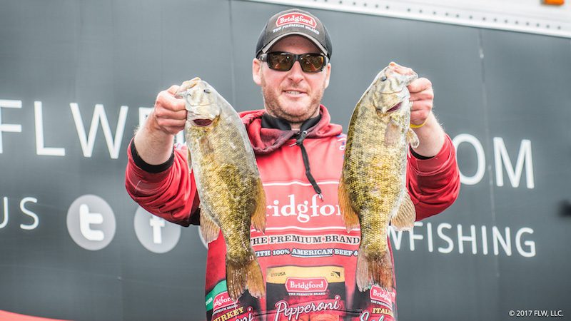LA CROSSE, Wis. (May 18, 2017) – Pro Matthew Stefan of Junction City, Wisconsin, weighed a five-bass limit totaling 18 pounds even Thursday to sit atop the standings after Day One of the FLW Tour at the Mississippi River presented by Evinrude. Stefan will bring a slim 2-ounce advantage into Day Two of the four-day event that features 160 of the world’s top bass anglers competing for a top cash award of up to $125,000.