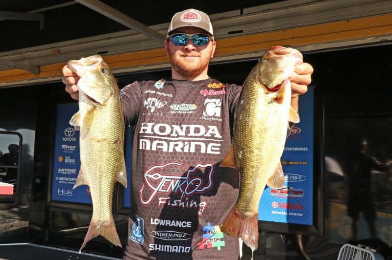 Jesse Wiggins of Cullman, Ala., takes the lead on the second day of the 2017 Bass Pro Shops Bassmaster Southern Open No. 3 held on Smith Lake out of Jasper, Ala., with a two-day total weight of 26 pounds, 7 ounces.