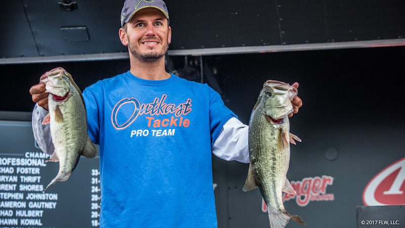 PARIS, Tenn. (Nov. 3, 2017) – Boater Chad Foster of Pequot Lakes, Minnesota, brought four bass weighing 13 pounds, 9 ounces, to the scale Friday to jump from third into the lead after Day Two of a very tough Costa FLW Series Championship on Kentucky Lake. Foster’s two-day total of nine bass weighing 33-6 gives him a slim 1-pound, 13-ounce, advantage over second-place boater Larry Stoafer of Leavenworth, Kansas, heading into the third and final day of competition. Reigning FLW Tour Angler of the Year Bryan Thrift, who led the event on Day One, weighed just two bass totaling 3-9 and fell to third place.