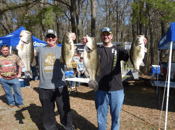 Sutton’s regular partner, Michael McLamb). They took home a whopping $1,190 for the 9.34 lb. bass!!!The prize money got spread around pretty good today!Only 124 fish were weighed in for a total of 452 pounds for an average of 3.56 lbs. each. Most of the fish were caught on Swimbaits baits, chatterbaits, spinnerbaits and shallow running crankbaits in anywhere from 2 to 10 feet of water. Water temps are very important now and they need to warm up a little to get that hot bite we all want! Going to Falls next week and hopefully it will warm up a bit! Falls is always a great lake just about any time of year!!I want to thank all the anglers that participated and all our sponsors that support this trail. Our next tournament is Saturday March 24th, the PBC Cashion Fishing Rods Spring Trail Q#3 at Falls Lake out of Ledge Rock Wildlife Ramp.