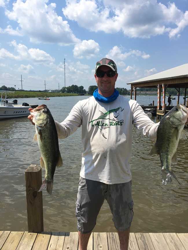 Brian Bishop of Haddock, Ga brought the winning sack of five bass weighing 15.05 pounds to the scale for the AFT D72 tournament at Lake Sinclair on June 10, 2018. Brian concentrated his efforts on flipping docks with a big Zoom worm. He won $735 cash, and a first place trophy.