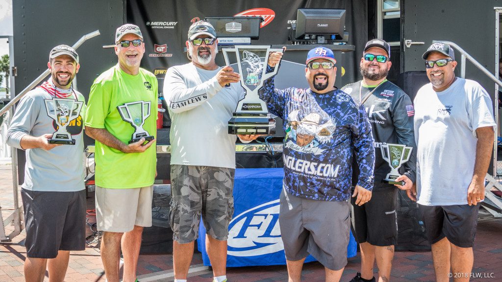 KISSIMMEE, Fla. (July 10, 2018) – The Lew’s Fishing-sponsored trio of Peter Thliveros, John Carman and Matthew Mattingly, and the Co-anglers.com trio of Tomas Gomez, Billy Benedetti and Cesar Jaimes both brought a five-bass limit to the scale Tuesday morning weighing 22 pounds, 2 ounces to tie for the win at the fourth annual ICAST Cup presented by FLW bass-fishing tournament on Lake Toho.