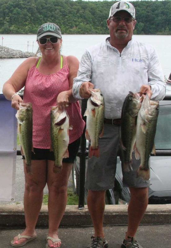 It was another beautiful summer day on Kentucky Lake, June 24, 2018 for the ABA Couples Series. There was lots of sunshine and a slight breeze, perfect conditions for the legendary ledge fishing on this lake. The air and water temperatures were in the high 80s. Seventeen teams launched at 5:30 AM to conquer those ledges. As usual, the bass cooperated with some competitors, while ignoring the efforts of others. Ten of the 17 boats weighed in a total of 25 bass for 79.01 pounds, 23 of which were released alive, healthy and happy. We paid out four places for a total of $1,435, including big bass for both men and ladies.