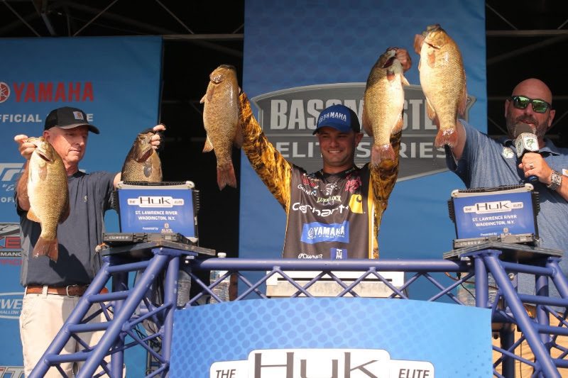 WADDINGTON, N.Y. — Giant limits of smallmouth bass exceeded expectations during Thursday’s opening round of competition as Matt Lee of Guntersville, Ala., weighed a tremendous 27-pound, 12-ounce limit of smallmouth bass to take an early lead at the Huk Bassmaster Elite at St. Lawrence River presented by Black Velvet.
