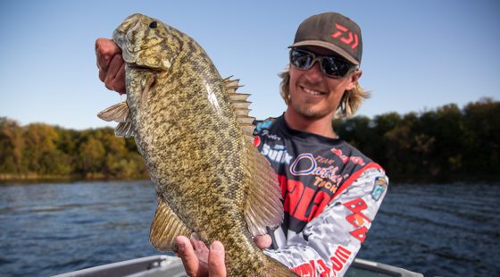 “There’s for sure three spots you want to fish on every wing dam,” says Rapala Pro Seth Feider. “The outside tip; the inside tip, where it meets the bank; and the eddy wash-out hole behind it. A lot of them are going to be tucked behind that wing dam, letting that current roll over top of them, or out on that deep tip.”