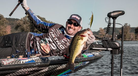 “Those fish were back in really flat stuff feeding throughout the fall, but in early winter they’ll head to stuff that’s going to be real steep,” says Ott DeFoe, a five-time Bassmaster tournament champion. “When they’re in transition, a great bait to connect with them is that Shadow Rap Deep. It’s got good side-to-side darting action, its flat sides give it a rolling flash, and as its name indicates, it’s a fairly deep-running bait – it will run 8 or 9 foot deep on ten-pound line.”