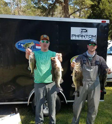 Will Thompson & Doug Robertson weigh in 4 bass @ 19.48 lbs to take 1st Place on the Cooper River! They weighed on the BF at 8.86 lbs!