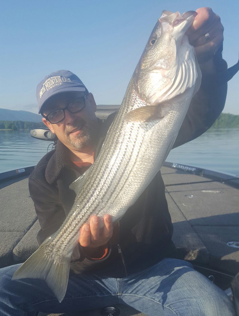 Picture:: Jeff Marsh from Smith Mtn. lake with a nice summer striper caught this week.