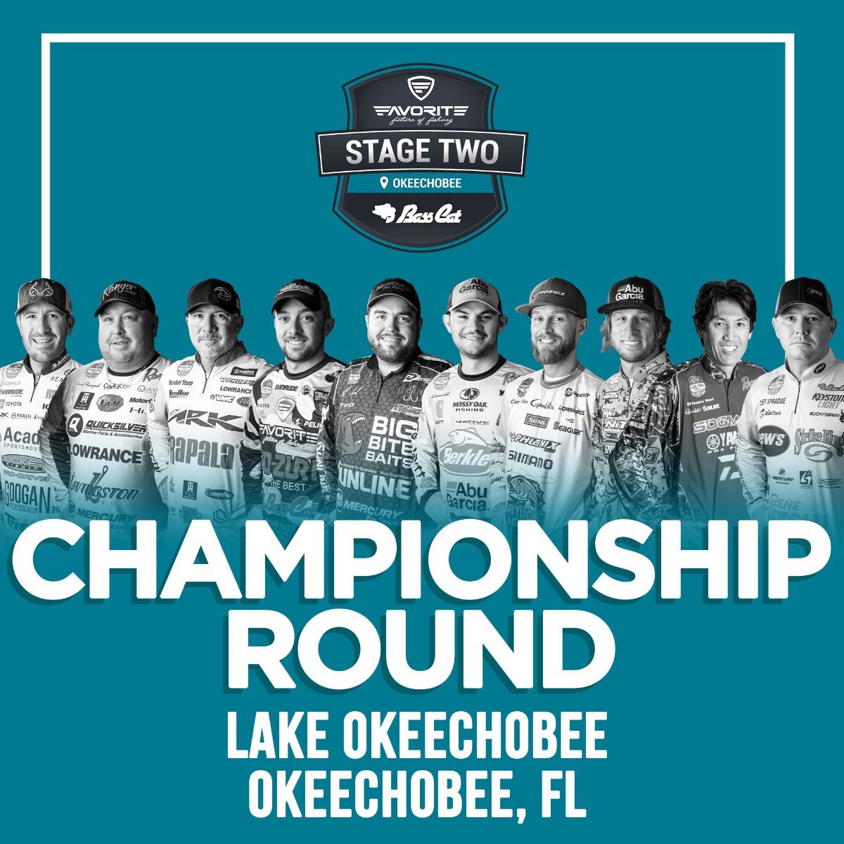 Pending no weather delays, the day begins with launch at C. Scott Driver Park, Okeechobee, Fla. 7:15 a.m. EST before lines-in at 8:00 a.m. Period 1 ends at 10:30 a.m. Period 2 spans 10:45 a.m. until 1:15 p.m. Period 3 begins at 1:30 p.m. and lasts until day’s end at 4:00 p.m. The General Tire Takeout show airs approximately 4:15 – 5:15 p.m. as anglers return to the ramp.