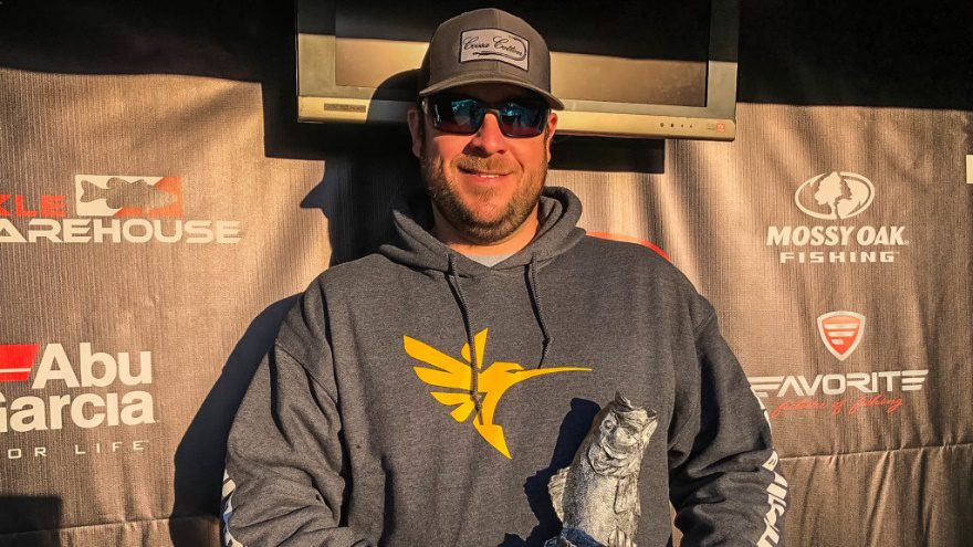 Adam Hickman of Caledonia, Mississippi, caught the largest bass in the Co-angler Division, a fish weighing in at 8 pounds even. The catch earned him the day’s Co-angler Big Bass award of $442.