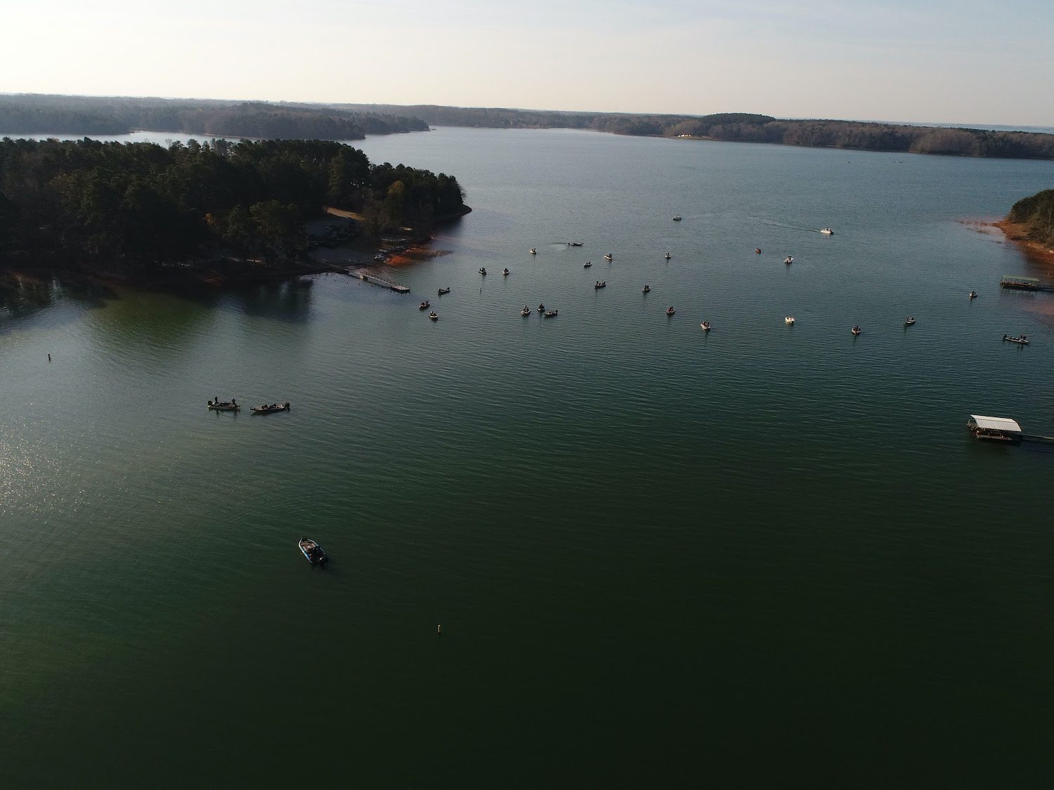 College anglers running up the Seneca or Tugaloo River could catch largemouth bass on crankbaits in the dirty water or by flipping to docks and shallow wood. However, Williamson notes the lower end of the lake will produce more consistent catches throughout the three days of competition. “You could have somebody run up the river and catch a good bag one day, but it is going to be hard to duplicate that for multiple days,” Williamson said.