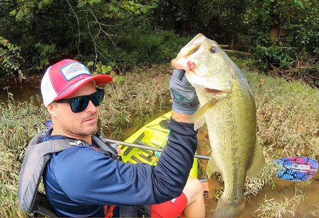 Ultimately, a 21-inch lunker largemouth sealed Gregory’s victory as he held the big fish card since Saturday afternoon. The fourth-place finisher in last month’s Hobie BOS Susquehanna River event, Gregory worked a Z-Man Project-Z® ChatterBait® tipped with a 5-inch DieZel Minnow™, Whopper Plopper, buzzbaits, and a Z-Man StreakZ™ slow-sinking jerkbait impaled on a Z-Man ChinlockZ® weighted hook to rack up quick limits in the same spot each morning before packing up and driving a half-hour away to relaunch and look for bigger fish. It was late on Saturday when he threw his Whopper Plopper surface lure between a trio of laydowns and the bank. “Those logs and root balls were laying parallel to the bank,” Gregory explained, “and I knew it would be a challenge to get a big fish out of that small pocket. As my lure approached the innermost log, a 10-inch bass jumped on it. It fell off as I cranked it past the log furthest from the shore and one turn of the reel handle later the big one smashed it. I had to horse her away from those logs. I call that my ‘Praise the Lord!’ moment. That fish was the difference since Eric’s biggest was a healthy 19.75-inch fish. Yes, it helps to be a little lucky, but you still have to make the most of your opportunities.” Gregory attributed his overall success to heavy pre-event scouting. “I drove around the entire lake for a day-and-a-half before I put my kayak in for practice,” he revealed. “I think it’s important to look at all the water before you pick a section to fish. If you drop in to sample the first good-looking spot you see, you’ll miss even better water somewhere else. You need to target more than productive looking spots; you have to keep looking until you find small ecosystems that favor big bass.” |