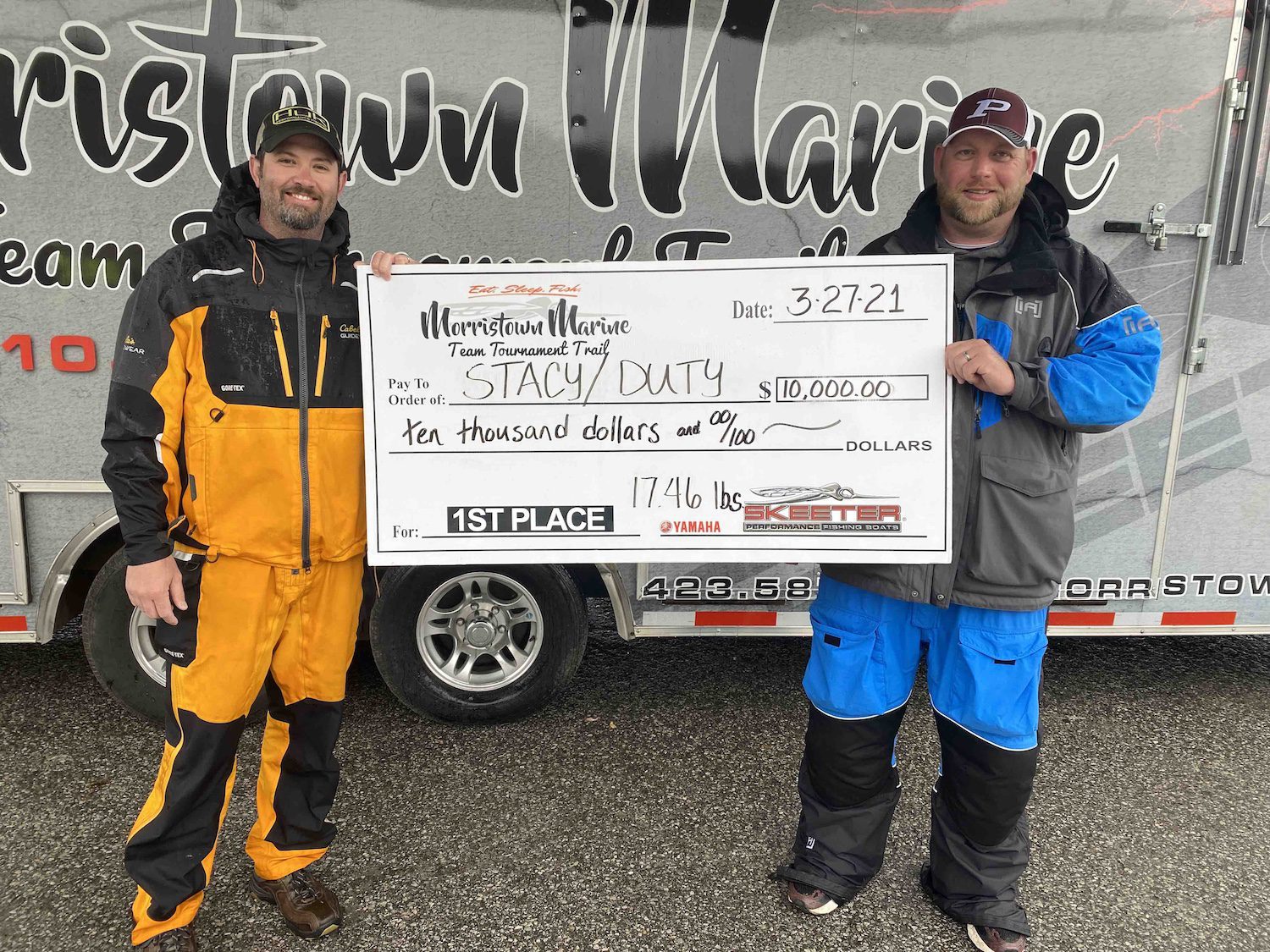 Morristown Marine Bucks paid out to Jeremy Gordon/Phillip Gordon (14.79 lbs) for Highest Finishing New Boat from Morristown Marine to the tune of $1,000.00 and to Cody Seeber/Jeff Moore (13.16 lbs) for $750.00 on 2nd Highest Finishing New Boat from Morristown Marine. Highest finishing Pre–owned Boat from Morristown Marine went to Cody Powell/Jim Powell(6.62 lbs) for $500 and to Brandon Hartgrove/Steve Robinson(5.61 lbs) for $250. We appreciate each of you choosing to purchase your boat at Morristown Marine. Thank You!!