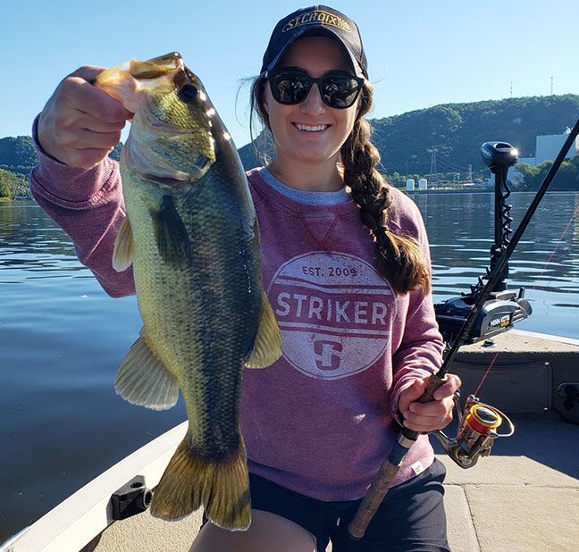 Thompson prefers a shorter spinning rod for dropshotting from her kayak. “In my opinion, a shorter rod is ideal for most kayak fishing. Because you are closer to the surface of the water, I find the reduced length makes it easier to land fish. A 6’6” rod is about perfect for me in the kayak; it makes it easier to net fish and is still long enough to fight them around the front of the boat.” Thompson often pairs a St. Croix Premier or Triumph spinning rod with a 2500-size reel spooled with 10-pound braid and a 10-pound fluorocarbon leader. She prefers a cylinder-style dropshot weight at the bottom of the rig and ties a size 2 or 4 VMC spin-shot hook 12 to 18 inches above the weight. She encourages anglers to experiment with different baits when dropshotting based on the forage available where they’re fishing, but often opts to nose-hook a 3-to-4-inch soft plastic minnow-style bait in some form of silver, pearl or green pumpkin color. While dropshotting is a great late-summer multispecies technique throughout the day, Thompson says this time of year can produce some exciting topwater bites in the hours around sunrise and sunset – for bass, pike, and even musky. “In the rivers I fish, I like to use poppers like the STORM Rattlin’ Chug Bug and a walk-the-dog style lure like the Heddon Zara Spook,” says Thompson. “Casting into slack water areas, inside current breaks, over submerged rock, next to wood, and along weed edges with a consistent cadence usually gets the job done but be ready to switch up the cadence if you aren’t getting bit. When using a popper, for example, try a pop-pop-pause right after casting near structure or a current break,” Thompson advises. “That first pause can be the ticket to getting a fish to strike. If a fish misses the lure the first time, keep going with the cadence that worked; chances are good it will strike again. These same topwater presentations work in lakes, especially on shallow grass flats or in deeper areas where weed growth tops out just below the surface.” |