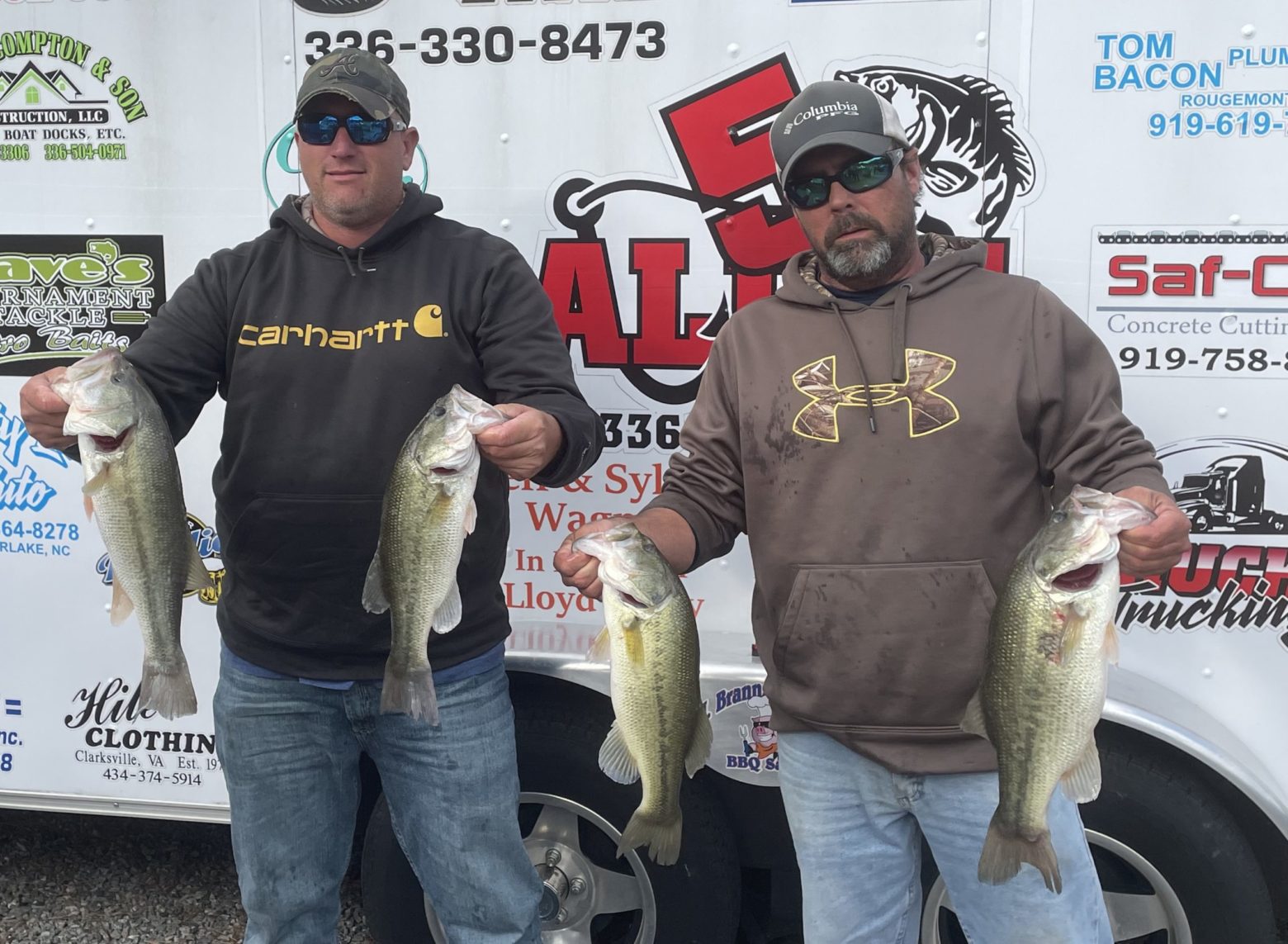 2nd place on day one was the team of Kevin Fisher & Allen Haigh with a bag weighing 14.19 pounds. Earning the the 2nd place TWT on Saturday for the amount of $400.00. 3rd place on day one was the team of Jordon Hall & Chris Byrd with a bag weighing 13.60 pounds. Earning the 3rd place TWT for the amount of $200.00. 4th place on day one was the team of Rodney Bowen & Nathan Clements with a bag weighing 12.49 pounds. Earning them the 4th place TWT for the amount of $100.00. They also held a tie for big fish with the 1st place team. That would end up being a split at the end of the tournament because there was nothing bigger caught on day 2. The 2 teams carried home $240.00 each for big fish.