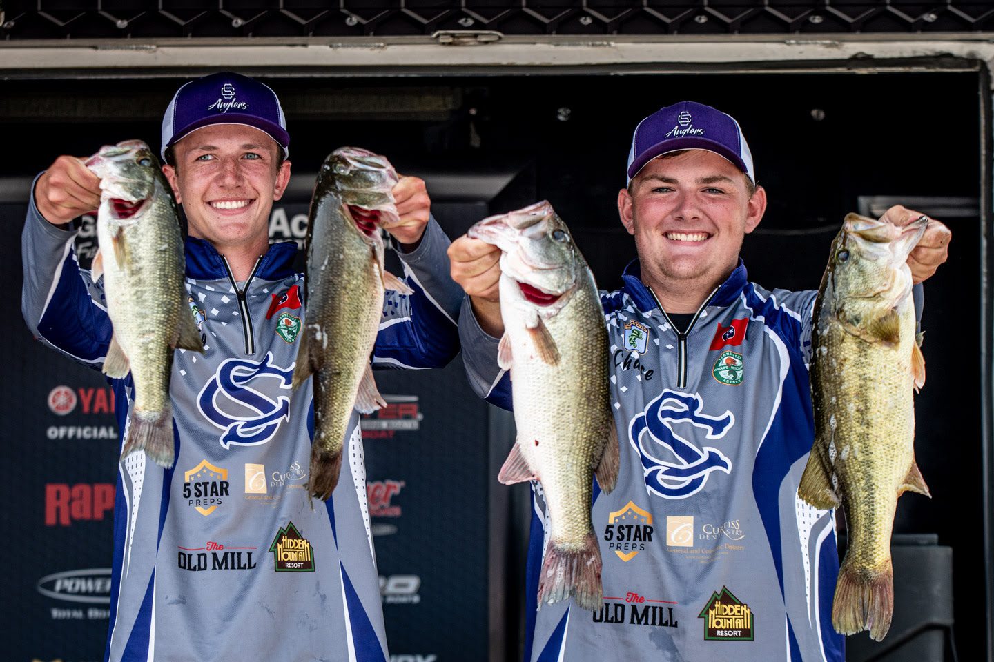 Illinois anglers Hunter and Blake Beckmann from Breese Central High School landed in third with 16-3, all largemouth. After losing a big fish in the morning, they filled their limit around midmorning and anchored their bag with a 5-10 largemouth.