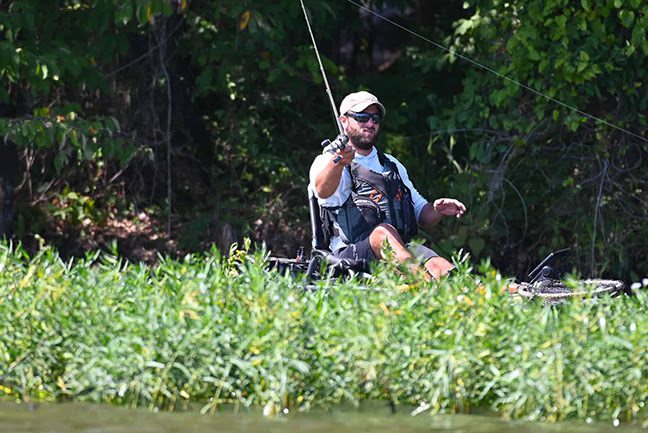 Indeed, it was, as Roumbanis tallied 86.5 inches of bucketmouths to finish third on Day One of the event and moved into a first-place tie with Tran after adding 78.75 inches of bass to his tally with an eight-place finish on Day 2. Tran finished in seventh-place on Day 1 with an 82.25 limit and followed that up with 82.75 inches on Day 2, which was good for fifth. Third-place finisher Jordan Marshall, meanwhile, rallied from a 23rd-place finish on Day 1 with a 75.75-inch haul to lead the field on Day 2 with 87.75 inches. For their efforts, Roumbanis earned $8,100, Tran took home $4,200, and Marshall received $2,300. James Haeberle of Colcord, OK, took home Bassin’ Big Bass honors and a $500 check for a 21.5-inch lunker caught on Day 1. AFTCO AOY points were also distributed to the first 100 finishers. Additionally, Roumbanis, Tran and Marshall qualified for the Hobie Tournament of Champions (TOC). “I’ve won a few fishing tournaments for juniors,” said Roumbanis, “but this is the first time I’ve competed at an adult level, so it’s hard to believe I came out on top. This was my first Hobie BOS event – and first kayak tournament. I was a little worried at the start because my options were limited. I don’t drive so I had to have my Dad drop me off at the lake. That meant I had to make my spot work both days until he picked me up in the afternoon. If the bite wasn’t there, I wouldn’t be able to pull my boat and head to another ramp.” |
