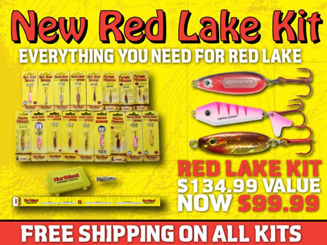 RED LAKE SPOON ASSORTMENT – 21 Piece Kit with Tackle Box, Line Clipper and Ruler Northland’s hot new ice fishing kit was concocted for arguably ice fishing’s hottest walleye lake: Minnesota’s Red Lake. But even if the legendary Red Lake isn’t in your rotisserie, the brilliant assortment of killer shapes, actions, and colors will prove awesome on shallower walleye bites, especially in stained to darker water. Lures to include ice fishing champions: Buck-Shot Coffin Spoon, Bro Bug Spoon, Buck-Shot Rattle Spoon, Macho Minnow Spoon, Forage Minnow Spoon, Forage Minnow Jig, and Glass Buck-Shot Spoon. $99.99 (save $35) |