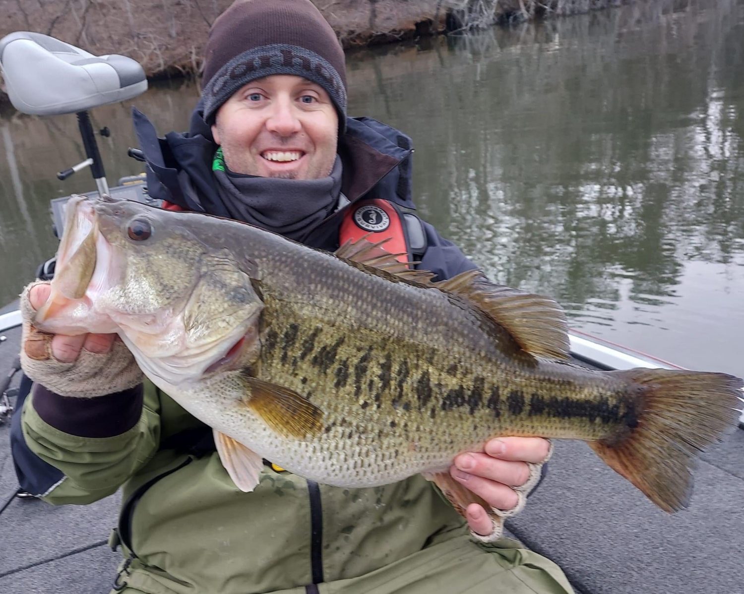 I honestly had not fished in 3 weeks so I was going purely on history. Pulled into a creek in the middle section of the Roanoke side first thing and started with a jerkbait and crankbait. I’ve been hearing that the Alabama rig was the deal lately so buying into the dock talk after going 20 minutes without a bite, I picked it up and started tossing it around some laydowns. (I have Livescope but haven’t really spent enough time with it yet to know exactly what I am looking at. The one thing I was able to determine though was the bank I was fishing had a lot of bait and fish moving up and down it, but they looked big and most likely stripers). There were two laydowns on the bank in front of me and I tossed the A-rig between them and she bit. I thought it was a striper at first but to my surprise it was a largemouth. Once we got her in the net, I knew she was big but no idea how big until she rolled on her side. I weighed her, then after seeing that weight I tared (zeroed) it again and both times it hit 9.40 lbs. She couldn’t have been deeper than 5 or 6 feet as she bit pretty quickly after the A Rig hit the water. That was my only bite on the A Rig all day. My nonboater caught a keeper on a crankbait finally around 0930 so in an effort to not be the “one bite all day but it was the right one” guy at the weigh-in, I literally turned the graphs off and we cranked for the last 5 hours of the day and it paid off with some nice quality fish to make it a day I’ll never forget.
