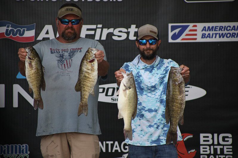 The first-place team of Lance Whitaker and Jeremy Briscoe weighed in 21.48. “The plan for us this morning was to head downriver to fish a spot we found that was about 100 yards long. We were expecting to catch about 17 pounds in this area based on our practice. However, when we started catching them, we ended up spending the whole day on this one spot. The keys in the area we found were scattered rocks on a point that were in 17-23 feet of water. We got behind the rock pile and threw up past it. To catch these fish, we used a NetBait T-Mac worm in green pumpkin on a Shakey and let the bait bounce down through there. We also used a Zman Ned rig to do some things, and we also used a Keitech Swimbait. We fished the swimbait a little higher in the water column where the bait fish were located.” Lance and Jeremy are no strangers to the winner’s stage with their most recent win coming in 2021 at Wheeler Lake in May. The team is looking forward to getting back there for the final stop of the ABT North Division. For this win, they collected a $10,000 check and automatically qualified for the ABT Championship.