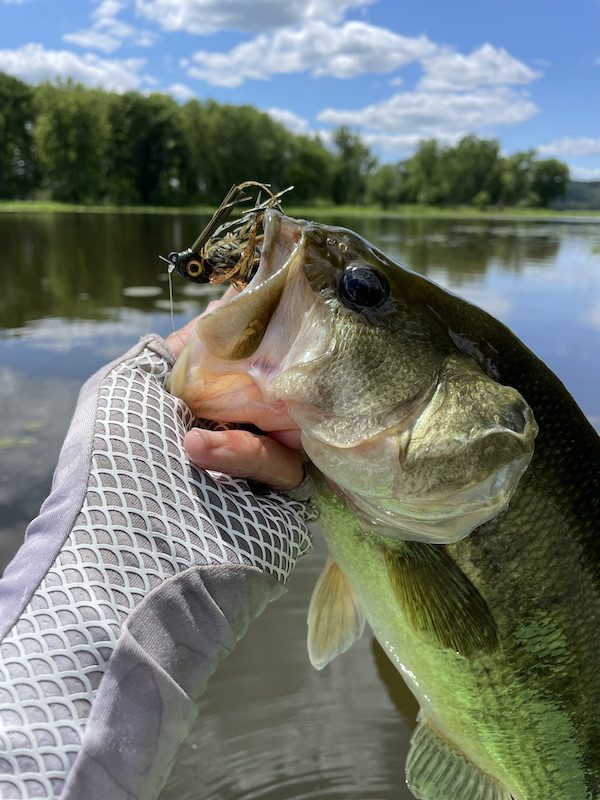 Summer is here. Days are long and the weather is warm. For me, it’s time to get out on a river. I’ll still venture out to a reservoir occasionally, but most of my summer fishing is done on moving water. Why do I prefer rivers over a big lake this time of year? The biggest reason is that a large population of the reservoir bass head to deep water once the water temps heat up. There are always some fish shallow, but fishing deep is more effective on most of the lakes I frequent. As I’ve said before, I love to fish shallow, so I gravitate towards places where most of the fish are still in that zone. My other reason for shying away from the big lakes is boaters. Hot summer days bring out the jet skiers, wakeboarders, and other pleasure boaters. I’ve got nothing against these folks. They have a right to share the water, but lakes can get pretty crowded this time of year. The rivers tend to be less trafficked. Non-tidal rivers tend to be too low for big boats. Similarly, tidal rivers, with their tannic water, expansive flats, and abundant vegetation, tend to attract fewer pleasure boaters than highland reservoirs. This makes for a quieter, more peaceful day on the water, and it increases your odds of encountering wildlife, a big bonus for me.