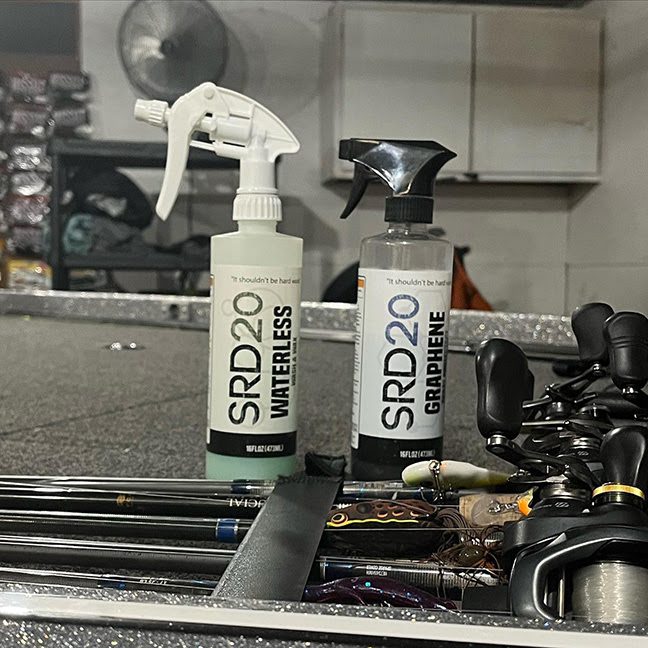 | Like most bassin’ sharpies, Perry is particular about keeping his tackle and gear in tip-top shape, and the same goes for his boat. “A clean boat is a confident boat,” he states, “and SRD20 products are what I use to keep mine looking sharp. From their Pink Boat Soap to Graphene Ceramic Spray Coating and Protectant, Waterless Wash & Wax, and Vinyl Protectant, I’ve been impressed with their ease of use and effectiveness.”The first thing Perry noticed when he tried SRD20’s popular Pink Boat Soap, was how the calcium scum line came right off the hull with little labor. “I also like their Graphene Ceramic Spray Coating and Protectant,” continues Perry. “It has an unobtrusive glossy finish that doesn’t streak. Some competing products I’ve used streaked heavily around the motor cowlings. SRD20 has been a real game-changer for me in that regard. If you are going to hold up a big fish for the camera, you want to do it in a great-looking boat!” |
