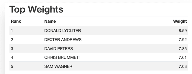 With weights averaging around 4lbs, it was not taking a lot for anglers to get a much needed check to pay for there weekend of Bass fishing on SML.