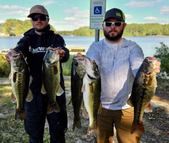 Evan White & Shane Doughtie win at Lake Gaston with 5 bass weighing 15.02 lbs! They collected $1,110.00!