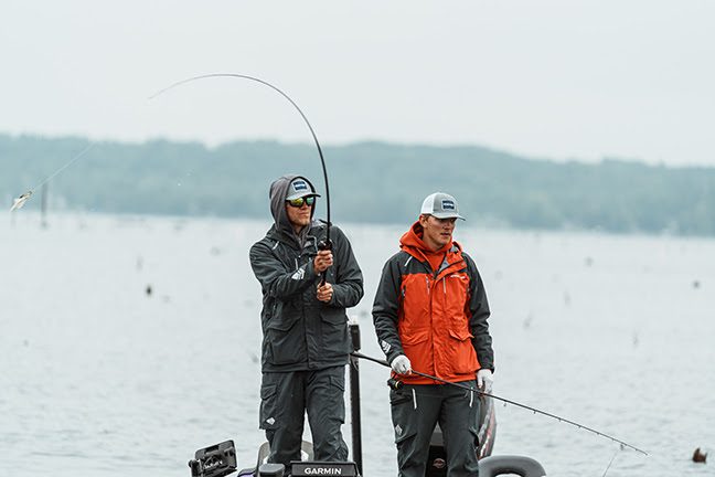 | APPLICATION #1: WALLEYE FISHING“Some walleye anglers are still trolling and vertical jigging sitting down, but what was once a stationary activity has turned into a very active casting game with the advent of forward-facing sonar. More walleye anglers are moving around the boat and fishing from the bow—and spot & stalk casting to fish what they see on their screen. That’s a lot of movement—and our garments cater to that style of contemporary fishing,” notes Ambur. Ambur and legendary NEXT BITE host and walleye pro, Gary Parsons, were just discussing the needs of today’s walleye angler: “Not only do our garments provide mobility and ability, Gary brought up that they’re well-articulated, which is important because today’s anglers are moving their arms and legs all the time and there’s a lot of energy being spent, which has been restricted in foul weather suits of the past, many of which were bulky and stiff. Our suits create less friction and hence less fatigue, which results in an angler being able to fish longer in poor conditions.”Previously, anglers were forced to choose toughness over comfort. Now, integrating stretch into the equation, Whitewater apparel is a paradigm shifter that provides anglers the best of all worlds. “Having tested every foul weather fishing suit out there, I was frustrated with the experience. It’s kind of like owning a 1-ton truck. They have great suspensions and are beasts, but they’re built for one mission in mind. Foul-weather fishing gear has been that 1-ton truck. We sought to design that fishing vehicle that has the durability and toughness of a 1-ton, but with ease of movement, agility, 100% waterproof performance, and a great weight-to-warmth ratio,” adds Ambur. |
