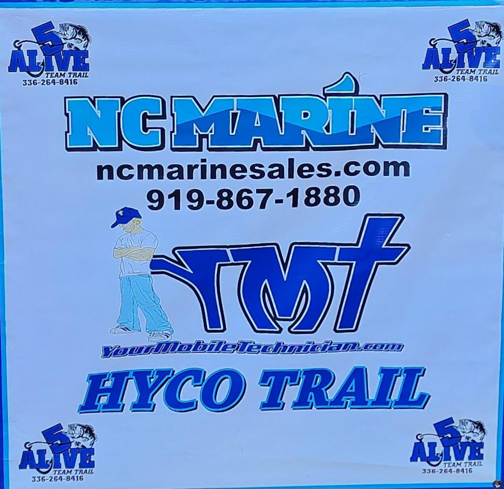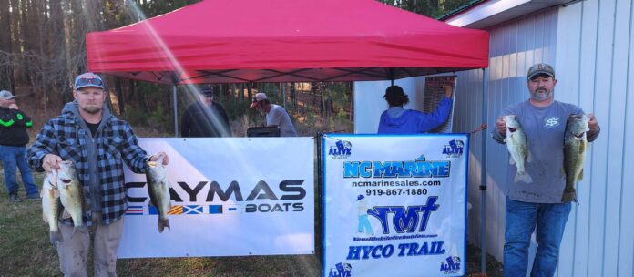 We had the 3rd tournament of the NC MARINE HYCO TRAIL last Saturday. We had 30 boats show up to try and figure out the constantly changing Hyco Lake. The fish are on the move to skinny water and some good ones are starting to eat. At the end of the day it was the team of Donnie Wyatt & Matt Tuttle that topped the 30 boat field. They had a 5 fish limit weighing 16.91 pounds. That bag earned them a total of $1100.00 Great job guys!! They were followed by the team of Stringer & Hopkins who had a 5 fish limit weighing 16.66 pounds anchored by a 7.37 pound bass that also won them Big Fish for the tournament. That bag earned them a total $900.00