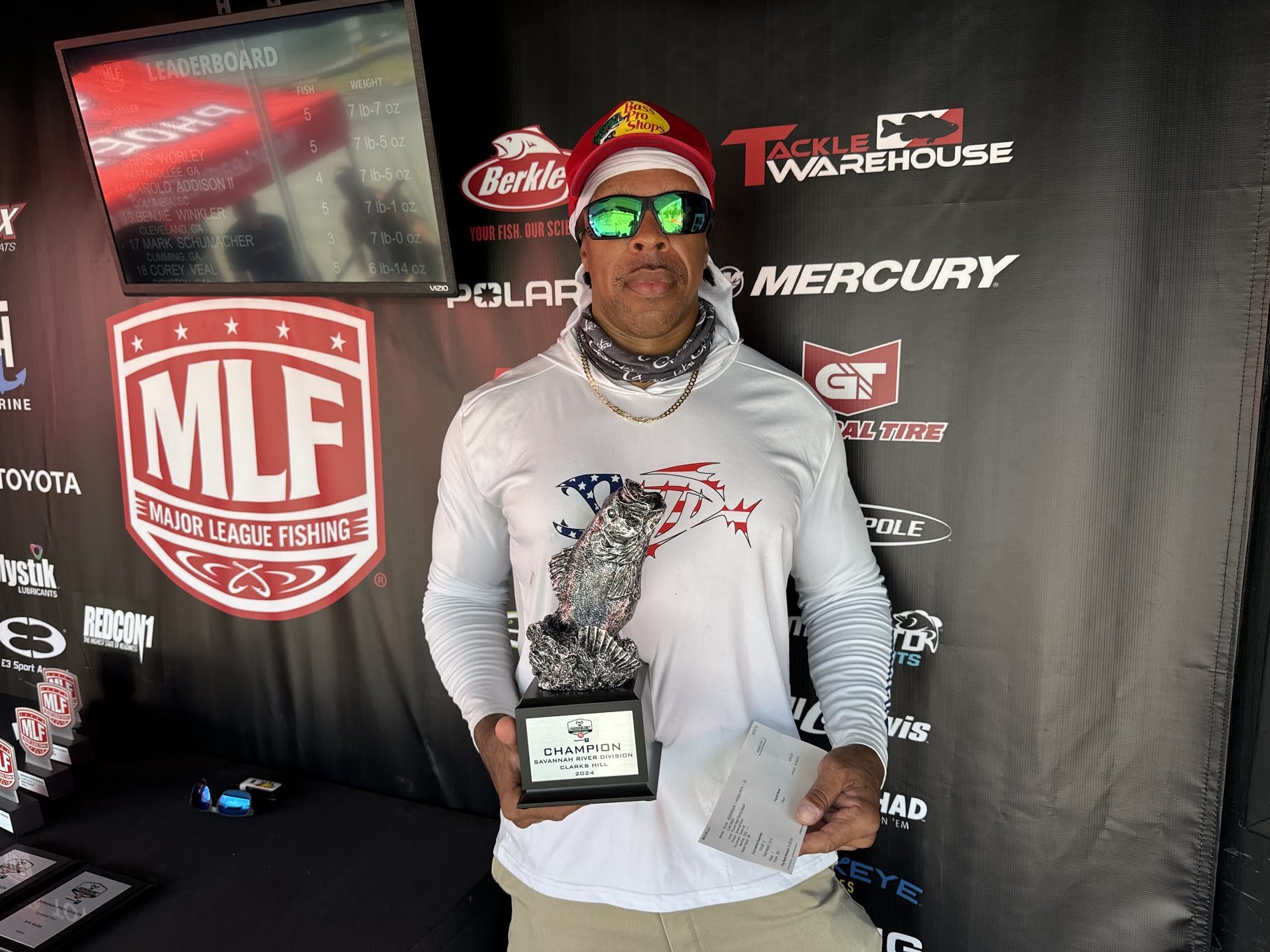 JD Carter of Honea Path, South Carolina, earned the Berkley Big Bass co-angler award of $192, catching a bass that weighed in at 6 pounds, 15 ounces – the largest co-angler catch of the day.