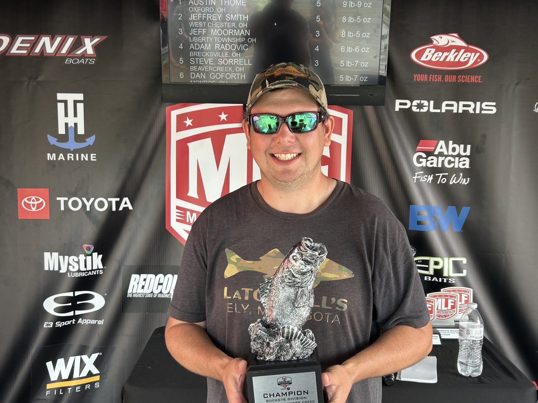 | Oxford’s Thome Tops Strike King Co-Angler Division LAWRENCEBURG, Ind. (July 1, 2024) – Boater Jamie Cunnagin of New Lebanon, Ohio, caught a five-bass limit weighing 12 pounds, 2 ounces, Saturday to win the MLF Phoenix Bass Fishing League (BFL) Presented by T-H Marine on the Ohio River at Tanners Creek. The tournament was the third event of the season for the BFL Buckeye Division. Cunnagin earned $5,082 for his victory. The Ohio River is a great place to break out classic shallow-water bass fishing tactics, and Cunnagin is a local stick who knows all the tricks. “I basically threw a spinnerbait and a (Yamamoto) Senko most of the time,” he said. “I fished 2 feet or less most of the day. I fish down there a lot, and I kind of do the same thing usually.” Cunnagin has some favorite creeks that he runs when he fishes out of Tanners Creek, and that’s exactly where he went for most of the tournament. “It was just one of those days that what I was doing and where I was fishing they bit,” he said. “I just happened to stumble across a couple big fish. I actually came back in an hour early. I thought I had around 11 pounds at the time, and I had one small fish that I needed to get rid of – like a 1.16. I just went back in Tanners and milled around with 40 other boats in there the last hour. There’s a tree in there that I waited on a couple of guys to pull off of, and I actually flipped a (Zoom) Brush Hog in that tree and caught one like 2 pounds. I culled that fish (the 1.16) out, and that put me over 12 pounds.” The majority of Cunnagin’s fish came on a 3/8-ounce spinnerbait. He was primarily targeting wood, but also caught fish on rock banks and in between pieces of cover during the cloudy hours of early morning. “I rolled,” he added. “I was moving. I covered a lot of water in a short period of time. I had a limit in probably 35, 40 minutes. “I just ran creeks that I like, that I feel comfortable fishing.” The top 11 boaters finished the tournament: 1st: Jamie Cunnagin, New Lebanon, Ohio, five bass, 12-2, $5,082 2nd: Nick Ryan, Cleves, Ohio, five bass, 10-11, $2,019 3rd: Hunter Colwell, Sidney, Ohio, five bass, 10-3, $1,845 (includes $500 Phoenix MLF Contingency Bonus) 4th: Michael Nesbitt, St. Paris, Ohio, five bass, 8-15, $942 5th: Chris Martinkovic, Hamilton, Ohio, five bass, 8-3, $1,107 6th: Brian Campbell, Oxford, Ohio, five bass, 8-2, $740 7th: James Rebholz, Morrow, Ohio, five bass, 7-13, $673 8th: Ryan Hipsher, Hillsboro, Ohio, five bass, 7-6, $606 9th: Matthew Strickland, Portsmouth, Ohio, five bass, 7-5, $538 10th: Seth Fricke, Oxford, Ohio, five bass, 7-4, $447 10th: Brandon Smith, Mason, Ohio, five bass, 7-4, $447 Complete results can be found at MajorLeagueFishing.com. Cunnagin caught a bass that weighed 4 pounds, 5 ounces, and earned the Berkley Big Bass Boater award of $545. ![]() Austin Thome of Oxford, Ohio, won the Strike King co-angler division and $2,019 Saturday, after bringing five bass to the scale that totaled 9 pounds, 9 ounces. The top 10 Strike King co-anglers finished: 1st: Austin Thome, Oxford, Ohio, five bass, 9-9, $2,019 2nd: Jeff Moorman, Liberty Township, Ohio, three bass, 8-5, $1,114 2nd: Jeffrey Smith, West Chester, Ohio, five bass, 8-5, $842 4th: Adam Radovic, Brecksville, Ohio, four bass, 6-6, $471 5th: Steve Sorrell, Beavercreek, Ohio, three bass, 5-7, $387 5th: Dan Goforth, Monroe, Ohio, two bass, 5-7, $387 7th: Bill Meyers, Urbana, Ohio, two bass, 5-1, $336 8th: Dylan Grace, Scottsburg, Ind., four bass, 4-15, $386 8th: Jacob Alltop, Lewistown, Ohio, four bass, 4-15, $286 10th: Scott Standafer, Felicity, Ohio, three bass, 4-12, $235 Jeff Moorman of Liberty Township, Ohio, earned the Berkley Big Bass co-angler award of $272, catching a bass that weighed in at 5 pounds, 13 ounces – the largest co-angler catch of the day. After three events, Sean Wieda of Alexandria, Kentucky, leads the Fishing Clash Buckeye Division Angler of the Year (AOY) race with 735 points, while Adam Radovic of Brecksville, Ohio, leads the Fishing Clash Buckeye Division Co-Angler of the Year race with 707 points. The next event for BFL Buckeye Division anglers will be held Aug. 3, at Lake Erie in Sandusky, Ohio. To register for the event as a boater or a co-angler, visit MajorLeagueFishing.com or call (270)-252-1000. The top 45 boaters and co-anglers in the region based on point standings, along with the five tournament winners of each qualifying event, will qualify for the Oct. 3-5 BFL Regional tournament on Kerr Lake in Henderson, South Carolina. Boaters will fish for a top award of $60,000, including a new Phoenix 819 Pro with a 200-horsepower Mercury or Suzuki outboard and $10,000, while co-anglers will compete for a top award of $50,000, including a new Phoenix 819 Pro with a 200-horsepower Mercury or Suzuki outboard. The 2024 Phoenix BFL Presented by T-H Marine is a 24-division circuit devoted to weekend anglers, with 128 events throughout the season, five qualifying tournaments in each division. The top 45 boaters and Strike King co-anglers from each division, along with the five qualifying event winners, will advance to one of six BFL Regional tournaments where they are competing to finish in the top six, which then qualifies them for one of the longest-running championships in all of competitive bass fishing – the BFL All-American. Proud sponsors of the 2024 MLF Phoenix Bass Fishing League Presented by T-H Marine include: 7Brew, Abu Garcia, B&W Trailer Hitches, Berkley, BUBBA, E3, Epic Baits, Fishing Clash, General Tire, GSM Outdoors, Lew’s, Mercury, Mossy Oak, Onyx, Phoenix, Polaris, Power-Pole, PowerStop Brakes, REDCON1, Strike King, Suzuki, Tackle Warehouse, T-H Marine, Toyota, WIX Filters and YETI. For complete details and updated tournament information, visit MajorLeagueFishing.com. For regular Bass Fishing League updates, photos, tournament news and more, follow MLF5’s social media outlets at Facebook, Instagram, and YouTube. 
