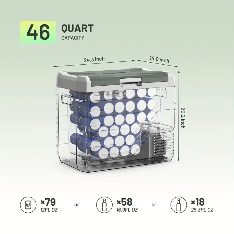 12 Volt Refrigerator, 53QT(50L) Electric Cooler, Portable Freezer 12V/24V DC 110-240V AC, 12V Fridge -468, 12V Cooler with Wheels & 2 Baskets for Travel, Truck, Boat, Camping