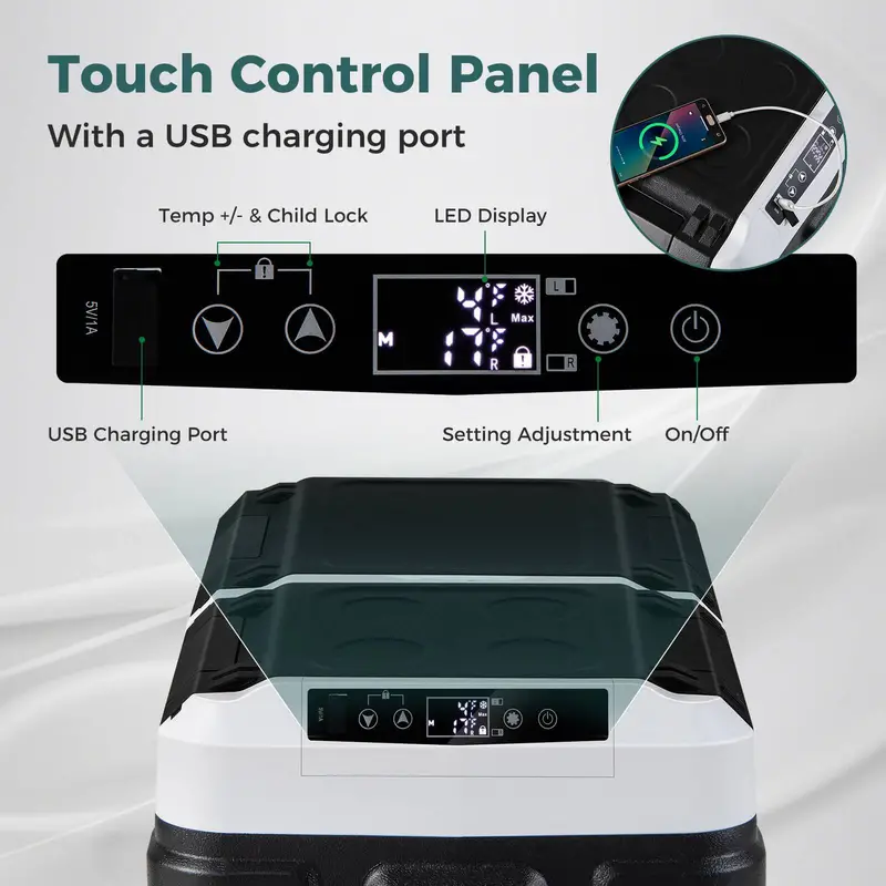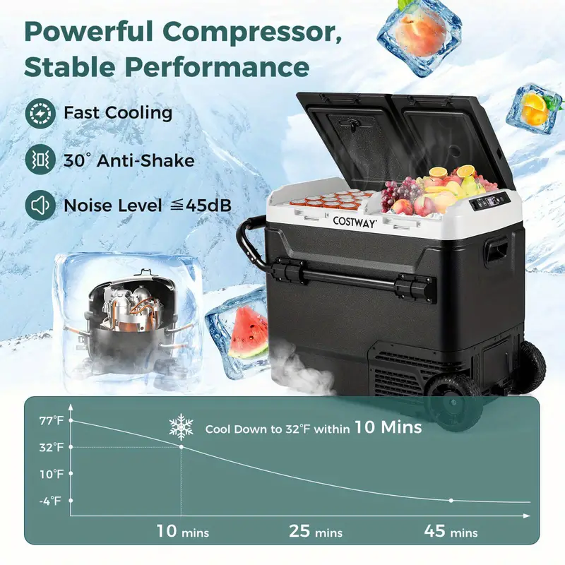 Dual Zone 12V Car Refrigerator 64QT Portable Compressor Fridge Freezer (-4℉~68℉)