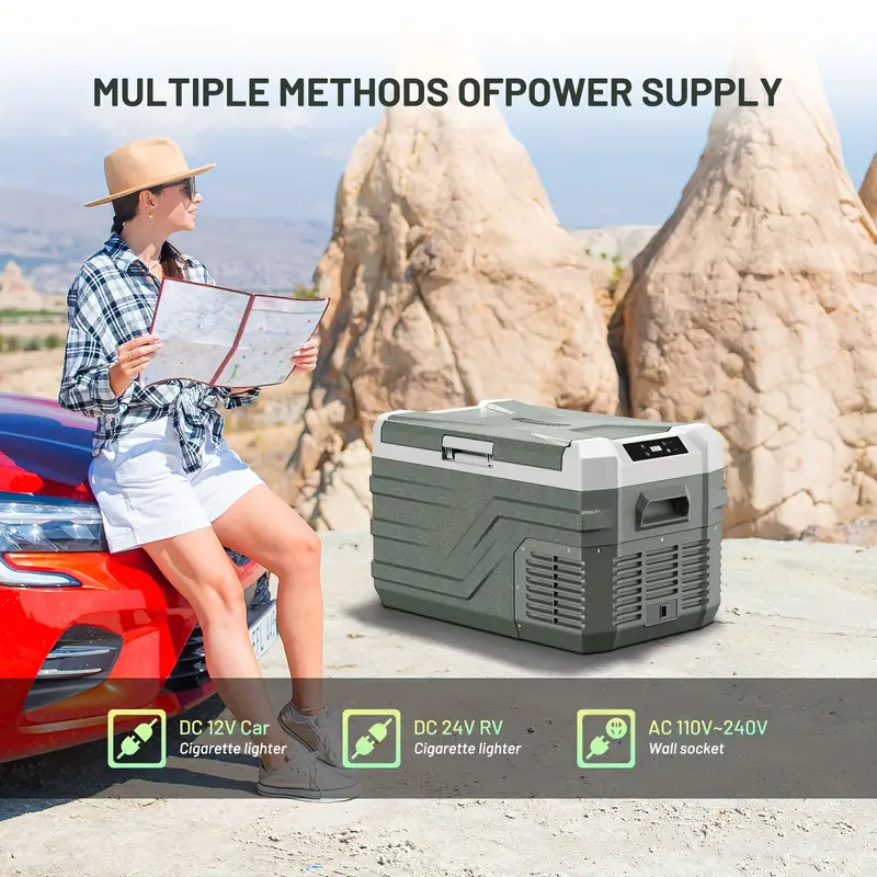 Alpicool Outdoor Car Fridge: Single Door, Single Control, Portable Freezer With Quiet Operation, Built-in Lighting, The Economical Choice For Outdoor Cooling, Ideal For SUV, RV, Camping, Travel, And Storing Food Outdoors, 12/24V DC And 100-240V AC