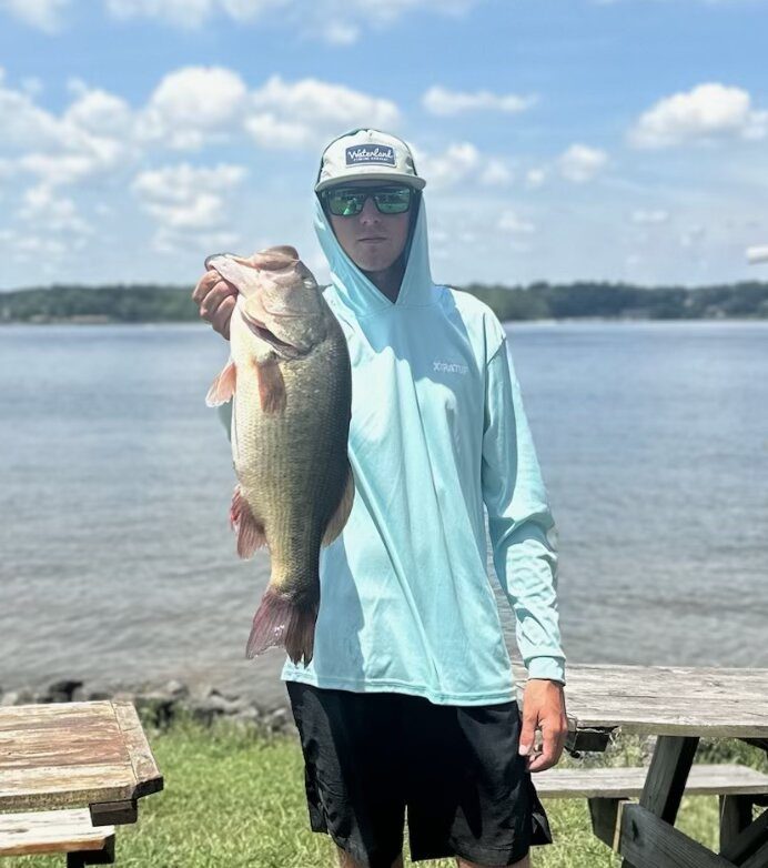 With continuous record-high temperatures, the largemouth have been sluggish. The large majority of fish are still schooled up close to deep water in creeks or main lake flats, points, humps, brush, drop-offs, or around shade and SAV (sub-aquatic vegetation). I have seen a thermocline and some fish pushing up shallower looking for oxygenated water. I hope the cooler temperatures and rainfall get the fish more active towards the end of the week. This is the time of year when feeding windows are tight. You can be around the motherload, however, if your timing is off, bites can be hard to come by and you’ll have to mix your presentations up.