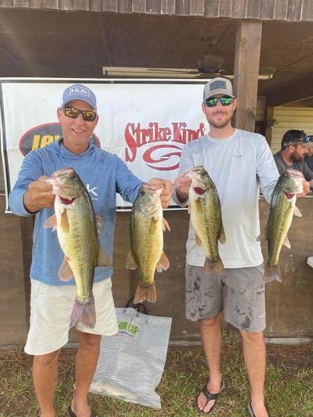 Jeff & Jacob Norris brought in a nice sack of Wateree bass weighing 15.84 lbs taking 1st Place!