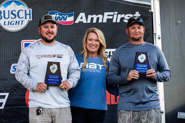 The third-place team of Walker Brown and Sloan Pennington shared that practice for them “was not good” Walker shared “I grew up here and now live in North Alabama, but I still consider Lay Lake as my home lake. I thought the two days we spent practicing were going to be better. We practiced all the stuff we used to catch them on and both days we ended up not catching them. Normally this time of year, I would expect to throw a spook all day and you can catch 18 pounds plus a day.” The team shared, “On tournament day we abandoned the practice plan and just went fishing today. On day one we didn’t fish a single thing we fished in practice and on day two we didn’t fish a single thing from day one. We caught everything we weighed in on a Green Pumpkin on a Davis shaky head and flipped the grass with a Green Pumpkin NetBait B-Bug on a 1oz weight. Yesterday we lost a couple of fish that should have had us close to 18-pounds we lost a 4-pounder at the boat and a 3.5 right at the net. Going out today we were excited and planned on flipping all day long we didn’t catch anything early so the fog delay didn’t hurt us. We felt we were in a position that if we did catch two of those that we lost yesterday we would be in a good place and knocking on the door to win. Today we only ended up catching only one of those but at the end of the day in the last 15 minutes, we culled with a 3-pound spot and another 2.5 spot.” Their total weight for two days was 30.21 pounds. With their third-place finish, they collected $5,000 payday.