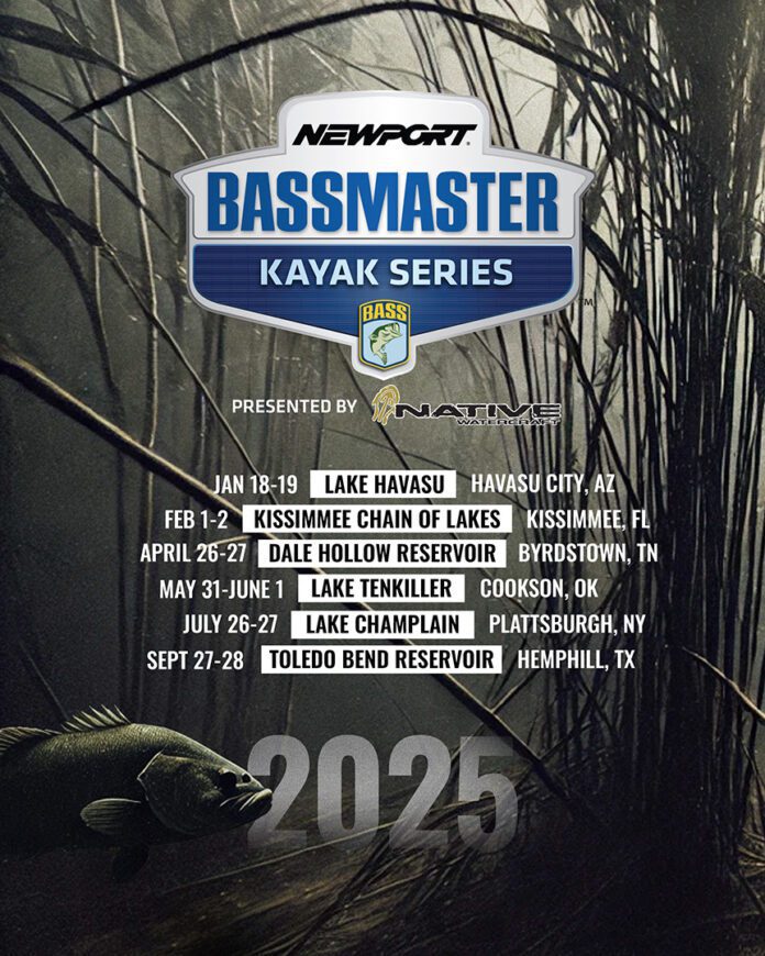 B.A.S.S. has announced the schedule for the 2025 Newport Bassmaster Kayak Series presented by Native Watercraft.