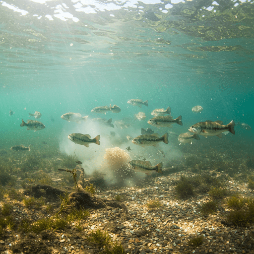 - Food access: Schools of baitfish, crawfish, or other prey.