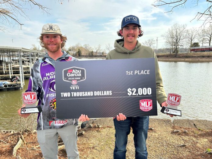 GILBERTSVILLE, Ky. (March 31, 2025) – The University of North Alabama duo of Gage King of Birchwood, Tennessee, and Banks Shaw of Harrison, Tennessee, won the MLF Abu Garcia College Fishing Presented by YETI event on Kentucky-Barkley Lakes Presented by Columbia PFG Friday with a five-bass limit weighing 21 pounds, 8 ounces. The victory earned the Lions’ bass club $2,000 and a qualification into the 2026 MLF College Fishing National Championship.