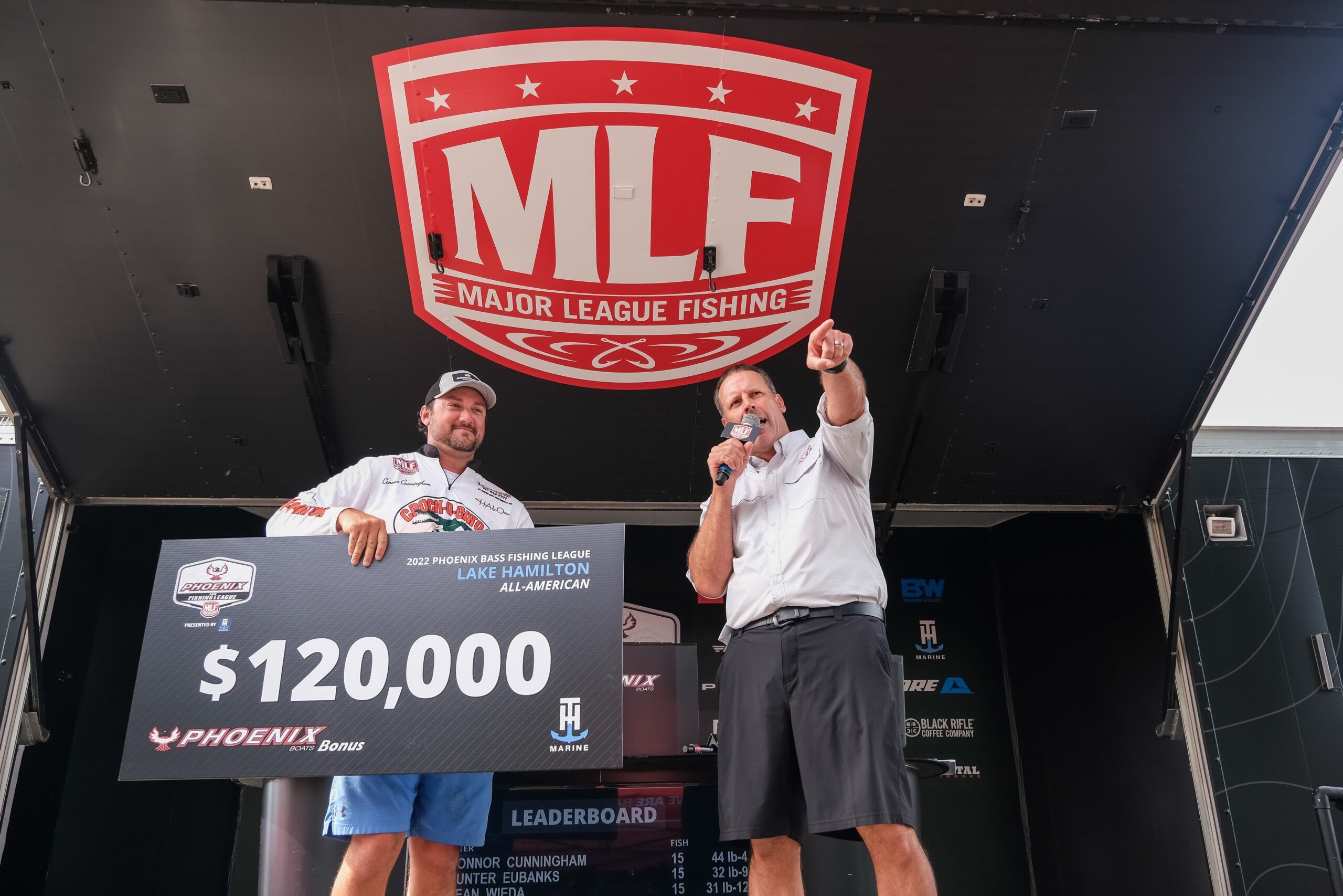 When the Phoenix BFL All-American was last held on Lake Hamilton in 2022, boater Connor Cunningham of Springfield, Missouri, caught a three-day total of 15 bass weighing 44 pounds, 4 ounces, to win the event and take home the top prize of $120,000. (Kory Savage/Major League Fishing)