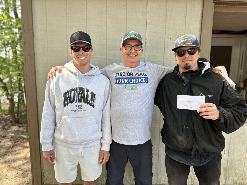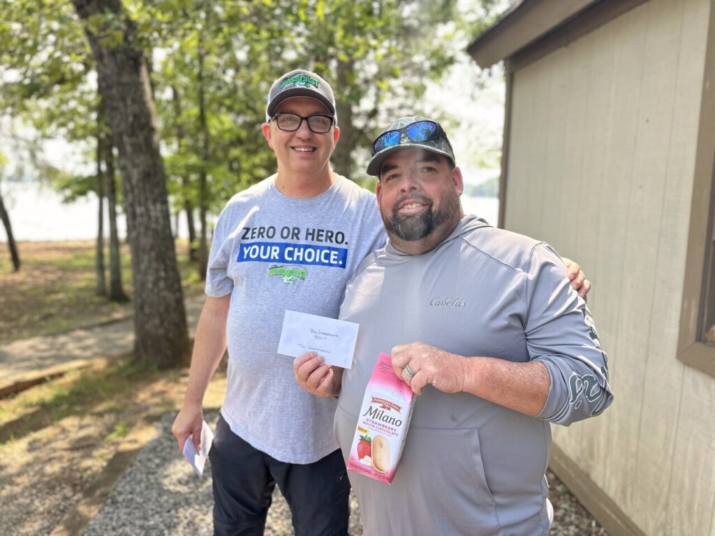 We thank the twenty teams that braved the wind today at stop #3 of the Bass Cast Tourney on Smith Mountain Lake. Even though the wind was rough, a few good-looking bags weighed in today. Congratulations to our winners, Ryan & Wayne Mace & a special thank you to the husband & wife team of Justin & Jamie Medeiros for bringing the Pepperidge Farm Snacks. See you all in October.