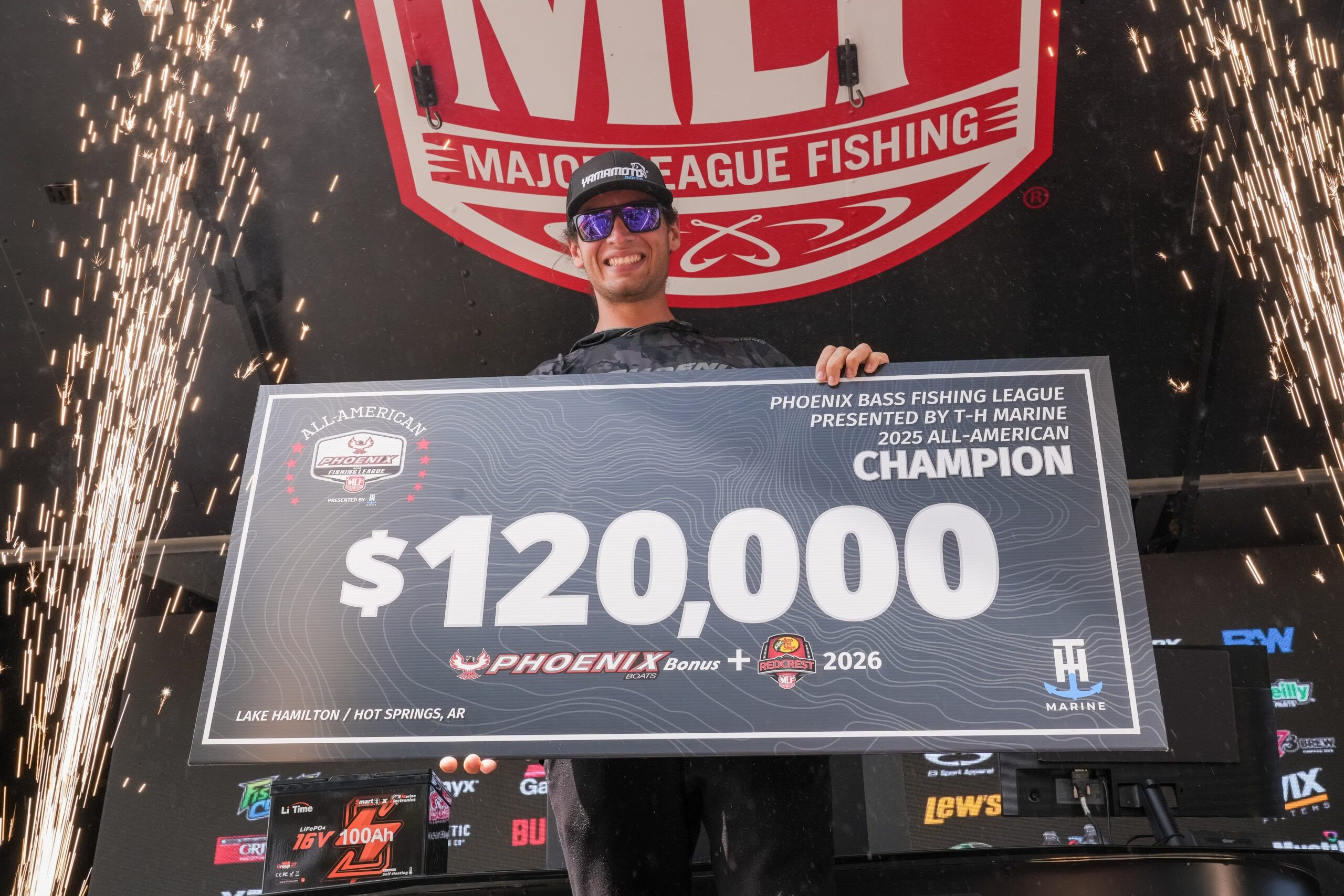 LBL Division boater catches final day limit weighing 17-4 to earn All-American title and top payout of $120,000 HOT SPRINGS, Ark. (May 31, 2025) – The final day of the Phoenix Bass Fishing League (BFL) All-American Presented by T-H Marine on Lake Hamilton was never a blowout, but boater Matteo Turano of Puryear, Tennessee, always had an answer for his competition. Weighing 17 pounds, 4 ounces on Saturday, the 23-year-old angler closed strong after catching two 19-pound bags to start the event with a 56-11 total for the win. The winner of last fall’s BFL Regional on Pickwick, Turano has made the Top 10 in more than half the MLF events he’s fished, and after banking $120,000 for the win in the All-American, he’s got a robust winnings total as well. In addition to the money, Turano qualified for the Toyota Series Championship this fall, as well as REDCREST 2026, where he’ll be pitted against the best anglers that MLF has to offer. Link to Weigh-in Photo Gallery: All-in for the win on Day 3 at Hamilton Link to HD Video of Day 3 Highlights from the On-the-Water Lake Hamilton produced more truly big fish than most non-locals expected in the event, though some locals knew there were plenty of big ones to be caught in the lake. However, despite some impressive weights, nobody had it easy on Hamilton, and while a limit wasn’t much of a problem any day, catching a kicker and assembling a solid bag around it was something that only Turano did all three days. “I just wasn’t too sure what to think about the lake,” Turano said of his practice period. “It seemed like I could catch fish on a variety of different techniques and all types of spots. Every point seemed to have bass on it. It made it really hard to know which points were going to have a big fish on it and to just catch a big fish, like, what bait they were going to eat. In practice, I caught one 5 1/2-pounder on a jig and minnow, and that kind of gave me some confidence in it. But at the same time, it was just one bite, and I was kind of thinking it might have just been a random one.” On Day 1, Turano caught a 3-pounder around 11 o’clock, and then shortly after boxed a 7-pounder – both on the minnow. “That’s when I just stuck it in my hand and just went to town,” he said. “All my big fish, I believe they were fry guarders, which is really weird. I actually have a lake back home where big females will guard fry, and there are a lot of little fish in that lake and just a few giants. “That place reminds me a lot of this place. When I’m there, I just put the trolling motor down until I see a big one on LiveScope, and then I try to catch it. I’m passing over lots of little fish, and it gets very mentally draining. But I’m so used to doing that at that lake and just trying to catch a giant; that’s what I was doing the last three days, just moving really slow.” To aid in his search for big bites, Turano backed his LiveScope range down to 80 feet, which allowed him to see more detail close to the bottom and tell the size of fish better. Between brush, grass and some stumps, Hamilton is loaded with shallow to mid-depth cover, but Turano had to constantly expand his horizons as the event went on. “It seemed like everybody else in the Top 10 was also fishing a similar area, and the fish that were left were just super smart, and it was really hard to get them to bite,” Turano explained. “Part of the key this week, I think I caught all three big fish on three completely different stretches, and I just felt like I needed to keep fishing new water and try to find something nobody else had found. It started off on really obvious points, and then it turned to just me running down a contour line and staying in that 10- to 12-foot range when I was looking for a big one.” Turano used a few minnows on a Buckeye G-Stroll head, with either a 7-foot, 6-inch, medium light or a 7-7, medium Phenix K2 Torzite spinning stick. Since moving to Tennessee from Illinois, Turano has rigged boats for A.C.S. Marine and fished, often very successfully. This year, he finished in the Top 10 in the Central Division of the Toyota Series and he finished 16th in last year’s Toyota Series Championship. But the All-American can be the break an angler needs to go to the next level, and $120,000 will likely pay a lot of entry fees for Turano the next few years. “It’s something I’ve always dreamed of, not just winning the All-American, but just winning a big tournament,” Turano said. “I got so close at Guntersville a couple weeks ago, and I can’t believe I got another opportunity to have a chance at winning and actually doing it. It just feels amazing.” The Top 10 boaters at the 2025 Phoenix BFL All-American on Lake Hamilton finished: 1st: Matteo Turano, Puryear, Tenn., 10 bass, 56-11, $120,000 2nd: Tanner Hadden, Appling, Ga., 15 bass, 53-7, $35,000 3rd: Caz Anderson, Haysville, N.C., 15 bass, 48-12, $25,000 4th: Clint Knight, Russellville, Ky., 15 bass, 45-7, $14,000 5th: Buddy Benson, Dahlonega, Ga., 15 bass, 44-10, $18,000 6th: Jake Lawrence, Paris, Tenn., 15 bass, 44-9, $14,000 7th: Dillon Falardeau, Hixson, Tenn., 15 bass, 43-2, $11,000 8th: Harbor Lovin, New Concord, Ky., 15 bass, 42-14, $10,000 9th: Cody Ross, Livingston, Texas, 10 bass, 42-9, $9,000 10th: Zack Fogle, Longview, Texas, 15 bass, 41-2, $8,000 A full list of results can be found at MajorLeagueFishing.com. Overall, there were 50 bass weighing 146 pounds, 7 ounces caught by the final 10 boaters on Saturday. All of the final 10 boaters caught a five-bass limit. The highest-finishing boater from each Regional Championship (including the Wild Card) at the All-American also now advance to the 2025 Toyota Series Championship for a shot at winning $235,000. The eight boaters that finished highest from their region earned an automatic qualification in to the 2025 Toyota Series Championship on Oklahoma’s Grand Lake o’ the Cherokees are: Caz Anderson, Haysv