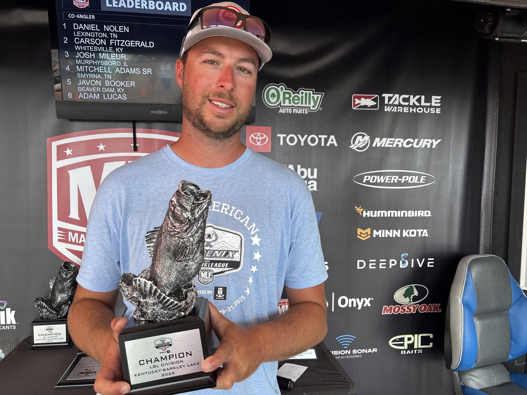| Tennessee’s Nolen Tops Co-Angler Division GILBERTSVILLE, Ky. (June 16, 2025) – Boater Clint Knight of Russellville, Kentucky, caught a three-bass limit weighing 15 pounds Saturday to win the MLF Phoenix Bass Fishing League (BFL) Presented by T-H Marine on Kentucky-Barkley Lakes . The tournament, hosted by Kentucky Lake Convention & Visitors Bureau, was the third event of the season for the BFL LBL Division. Knight earned $3,794 for his victory. Knight used an old-school Kentucky Lake ledge fishing practice strategy to prepare for this tournament. The key: not actually fishing. “I idled for almost about 14 hours,” he said. “I found 31 schools, and I just tried to be as productive as I could. I didn’t really waste that much time on them. Especially with this being a three-fish tournament (anglers were limited to three bass in their limit), I tried to target 4-plus-pounders. I’ve been so close so many times. I’ve been second through 10th, and I really just wanted to win one so bad.” The preparation paid off. Knight targeted most of his schools in 15 to 25 feet of water. He started right outside the takeoff around Moors resort, then ran to the dam. By the time he was done, he’d fished all the way to Paris, Tennessee. In between, he caught enough good ones, he figures, that his best five would’ve surpassed 24 pounds. The three he brought to weigh-in included a 4 1/2-pound smallmouth – the only smallie he caught all day. “Where I started it helped because I did catch a 5-pounder early,” Knight added. “I had 11-something off my first stop, and throughout the day I kept hitting as many spots as I could. Then about 1 o’clock I had 13 1/2, and I knew I was probably one bite away. I actually found a new school today during the tournament. I was so focused on trying to find a school that was set up correctly. A lot of people had already busted them up. When they’re not set up correctly, it’s very hard to catch a big one.” The new school produced in a big way. Knight landed a 5-plus-pounder, which culled out a 3 1/2, earning him the win by 10 ounces. “I cycled through baits,” he said. “It was kind of a typical ledge deal. I started off with a (Strike King) 8XD, and just watching the Major League Fishing (Bass Pro Tour) last week, seeing how productive a Carolina rig was, I threw that in. And I threw a minnow bait in there, and a big spoon, too. Once I knew they’d seen my bait, if they didn’t bite it the first time, I just tried to keep a good cycle.” For a guy that didn’t even have a true fishing boat until a few years ago, Knight is off to a heck of a start as a tournament angler. The 27-year-old, who works for a masonry company, has earned 16 top-10 finishes across MLF circuits since 2022. That includes finishing fourth in the 2025 BFL All-American just a couple weeks ago. The top 10 boaters finished the tournament: 1st: Clint Knight, Russellville, Ky., three bass, 15-0, $3,794 2nd: Levi Kohl, Edinburg, Ill., three bass, 14-6, $1,897 3rd: Jeff DeFew, Benton, Ky., three bass, 13-11, $1,265 4th: Harlan Thomas, Paducah, Ky., three bass, 13-10, $885 5th: Ryan Kirkpatrick, Benton, Ky., three bass, 13-9, $1,254 6th: Brad Hutcheson, Hornbeak, Tenn., three bass, 13-6, $696 7th: Harbor Lovin, New Concord, Ky., three bass, 13-2, $732 8th: Chase Dempsey, Marion, Ky., three bass, 13-0, $569 9th: Micah Mulvany, Salem, Ill., three bass, 12-11, $506 10th: Sam Boss, Paducah, Ky., three bass, 12-10, $443 Complete results can be found at MajorLeagueFishing.com. Ryan Kirkpatrick of Benton, Kentucky, caught a bass that weighed 6 pounds, 6 ounces, and earned the Berkley Big Bass Boater award of $495. ![]() Daniel Nolen of Lexington, Tennessee, won the co-angler division and $2,144 Saturday, after bringing three bass to the scale that totaled 11 pounds, 3 ounces. The top 10 co-anglers finished: 1st: Daniel Nolen, Lexington, Tenn., three bass, 11-3, $2,144 2nd: Carson Fitzgerald, Whitesville, Ky., three bass, 11-2, $949 3rd: Josh Mileur, Murphysboro, Ill., three bass, 10-13, $633 4th: Mitchell Adams Sr., Smyrna, Tenn., three bass, 9-11, $443 5th: Javon Booker, Beaver Dam, Ky., three bass, 9-6, $379 6th: Adam Lucas, Cape Girardeau, Mo., three bass, 8-15, $348 7th: Hunter Holguin, Knoxville, Tenn., three bass, 8-3, $300 7th: Jeff Johnston, Nashville, Tenn., three bass, 8-3, $300 9th: Jim Elmore, Independence, Ky., three bass, 8-1, $237 9th: Tim Burke, Burlington, Ky., three bass, 8-1, $237 Daniel Nolen of Lexington, Tennessee, earned the Berkley Big Bass co-angler award of $247, catching a bass that weighed in at 5 pounds, 5 ounces – the largest co-angler catch of the day. After three events, Levi Kohl of Edinburg, Illinois, now leads the Fishing Clash LBL Division Angler of the Year (AOY) race with 747 points, while Daniel Nolen of Lexington, Tennessee, leads the Fishing Clash LBL Division Co-Angler of the Year race with 744 points. The next event for BFL LBL Division anglers will be held July 12, at Kentucky-Barkley Lakes in Gilbertsville, Kentucky. To register for the event as a boater or a co-angler, visit MajorLeagueFishing.com or call (270)-252-1000. The top 60 boaters and co-anglers in the division based on point standings, along with the five tournament winners of each qualifying event, will qualify for the Oct. 24-25 BFL Regional tournament on Dale Hollow Lake in Byrdstown, Tennessee. Boaters will fish for a top award of a new Phoenix 819 Pro with a 200-horsepower Mercury or Suzuki outboard worth $50,000, while co-anglers will compete for a top award of $20,000. The 2025 Phoenix BFL Presented by T-H Marine is a 24-division circuit devoted to weekend anglers, with 134 events throughout the season, five qualifying tournaments in each division. The top 60 boaters and co-anglers from each division, along with the five qualifying tournament winners, will advance to one of 12 BFL Regional tournaments where they are competing to finish in the top three, which then q