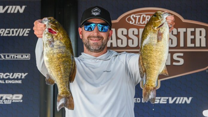 While most competitors have been targeting smallmouth around particular rock structure, Bruce took a different approach. He looked for schools of small yellow perch and shiners and fished fast with a 3/8-ounce Smeltinator jighead with a 3.75-inch Rapala Crush City Jerk.